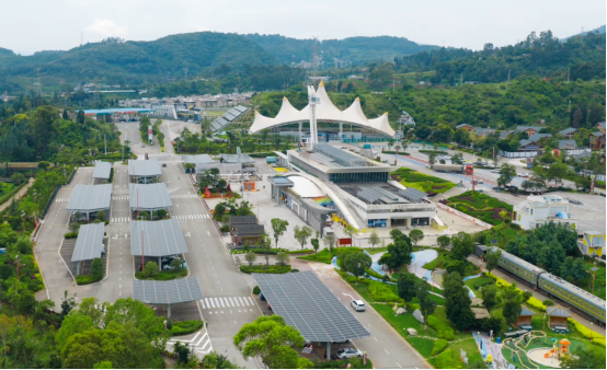 在“交通+物流”方面,依托读书铺服务区打造仓储配送中心与绿色食品集散平台,拓展物流分拨、贸易、金融等综合功能。联合宁德时代建成四川攀枝花至磨憨(关累)换电干线,作为全国首条跨省跨境重卡换电通道,推动“绿美通道经济”发展。