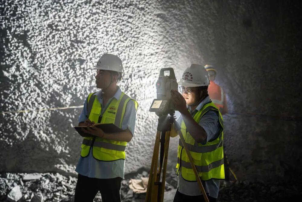 ↑ 11月6日,测量人员在渝昆高铁彝良隧道右线测量贯通误差。