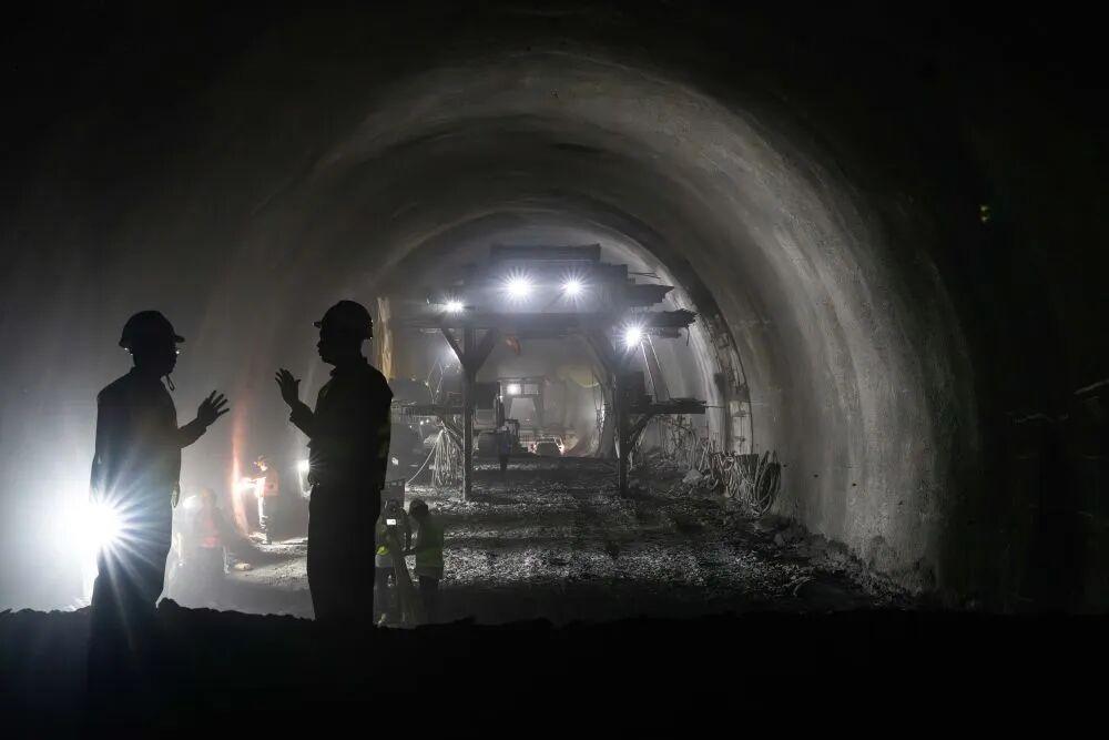 ↑ 11月6日,参建人员在渝昆高铁彝良隧道右线内交流。