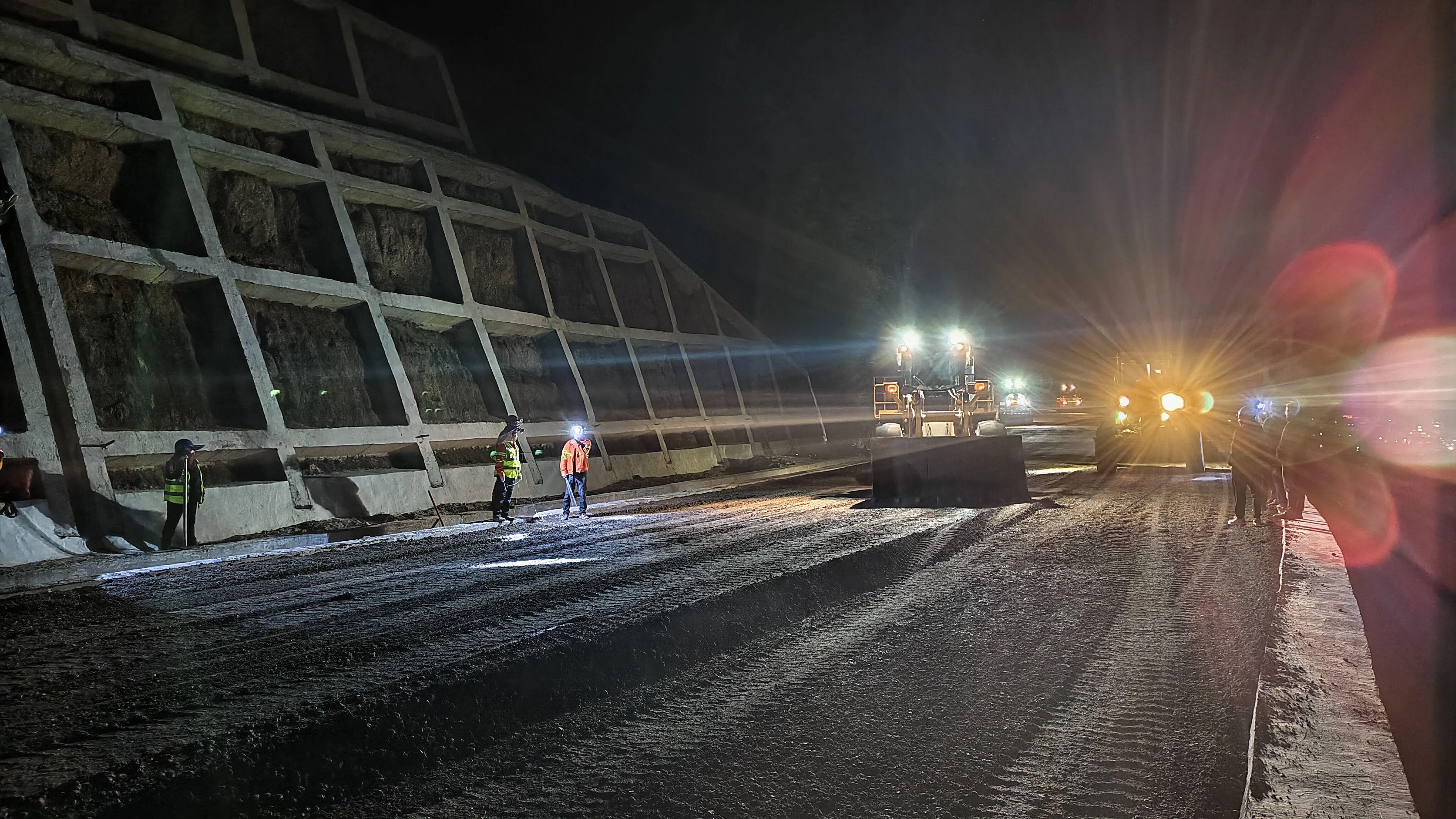 黄勐项目路面1标夜间铺筑水稳层(保山)