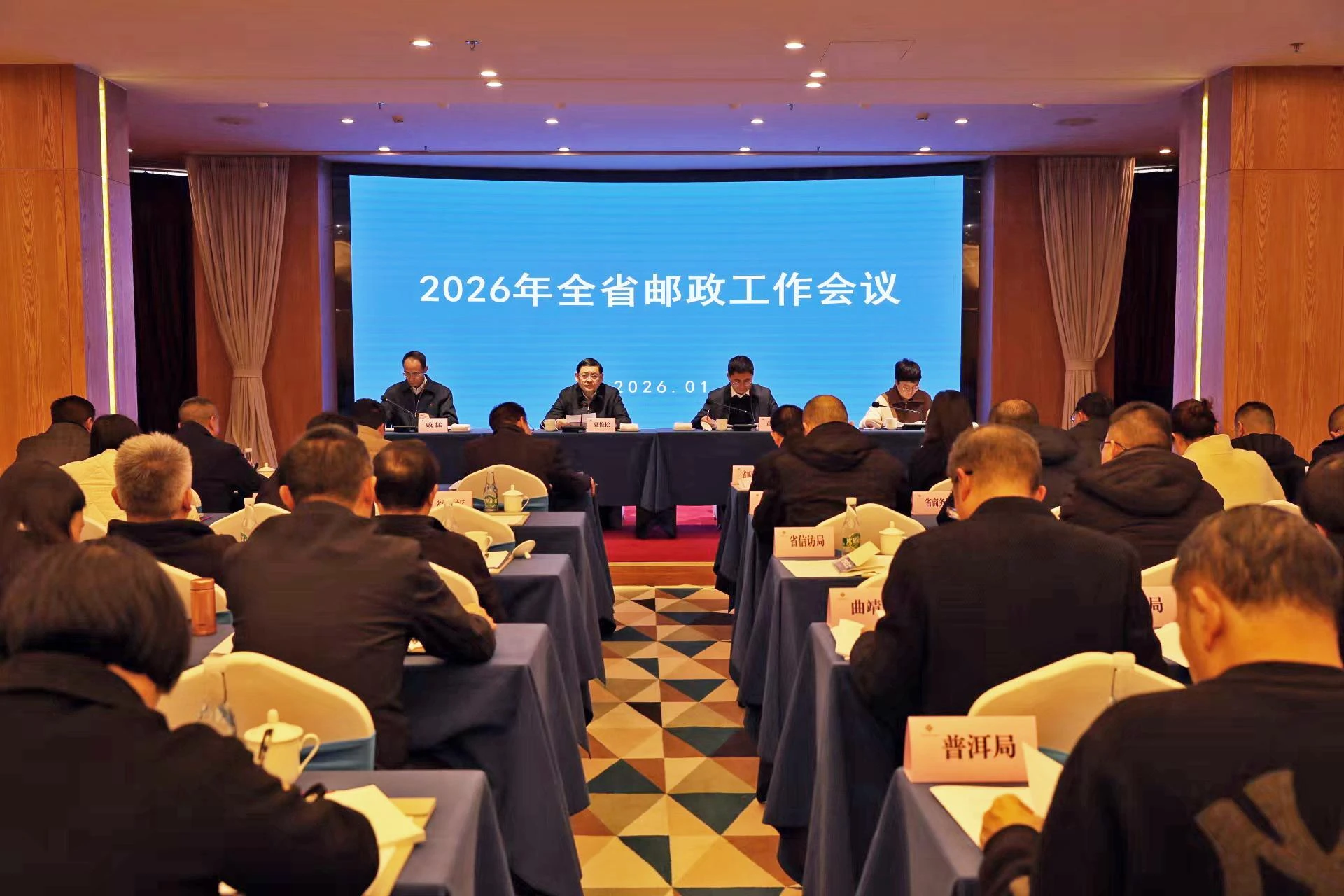1月15日上午,2026年全省邮政工作会议在昆明召开。会议传达了省政府对邮政工作的要求。91自拍 厅长、党组书记夏俊松出席会议并讲话;91自拍 副厅长、党组成员,省邮政管理局党组书记、局长袁聿东作工作报告。