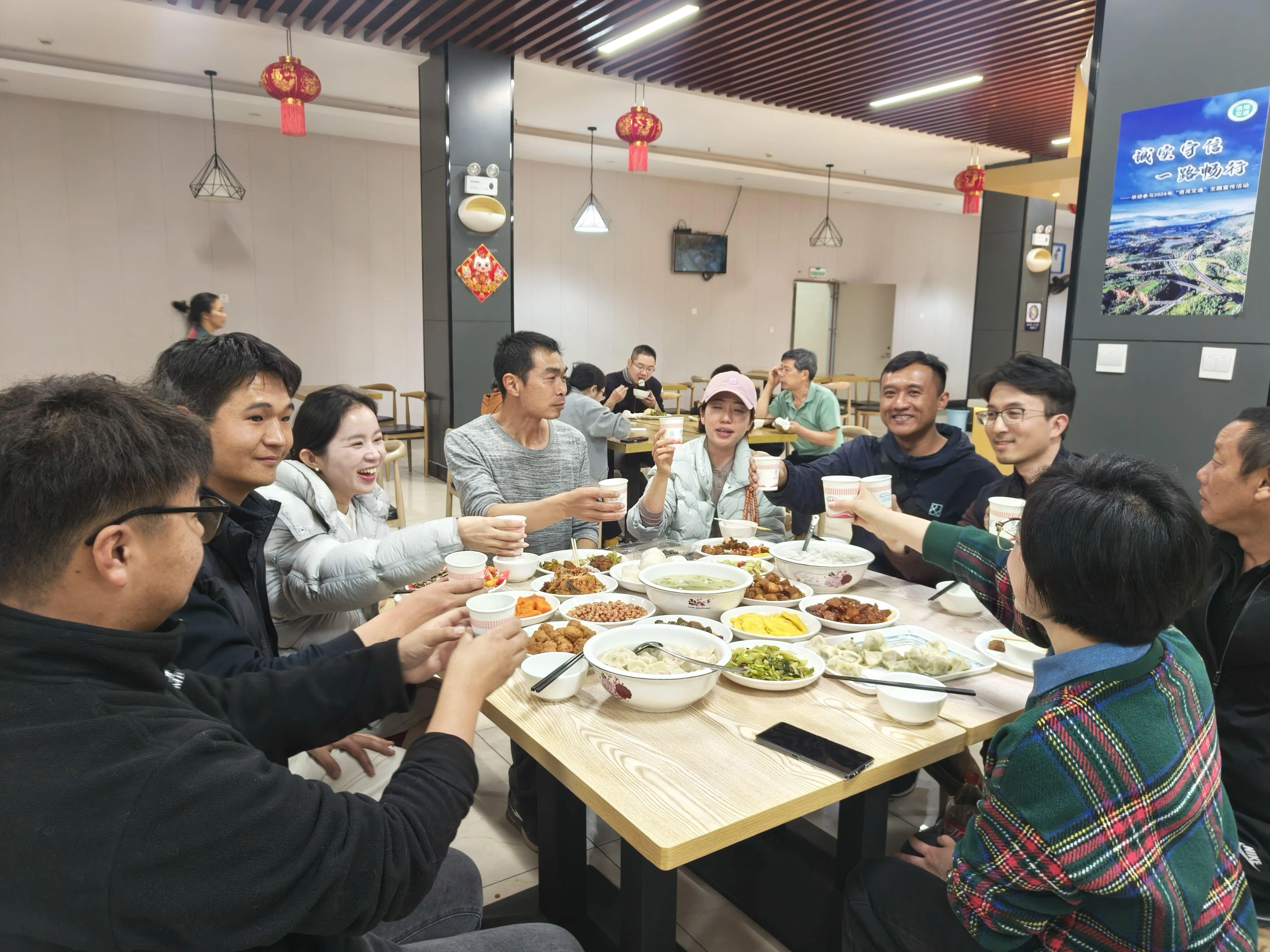 除夕,云南交投集团在全省37个高速公路服务区同步开展“暖冬驿站·卡友归心”免费年夜饭活动。读书铺、会泽等服务区张灯结彩,350余名工作人员坚守岗位,让奔波在途的司乘人员围坐一堂,吃上热乎的团圆饭。“在路上也能吃上热乎的年夜饭,太感动了!”“感受到了家的温暖,为云南交投点赞!”一句句朴实的话语,成为春运路上最动人的回响。