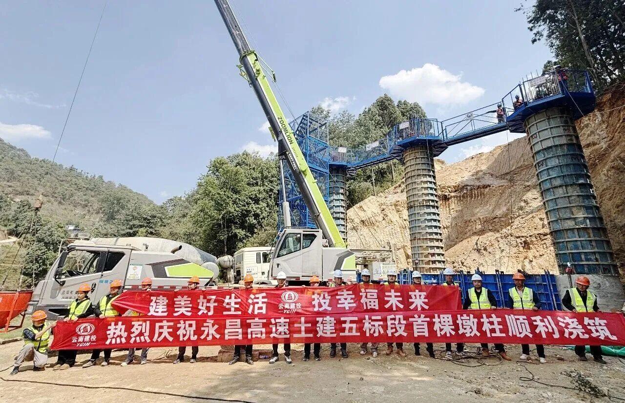 3月27日,永昌高速(昌宁段)项目漭水互通A匝道桥首棵墩柱顺利浇筑完成。