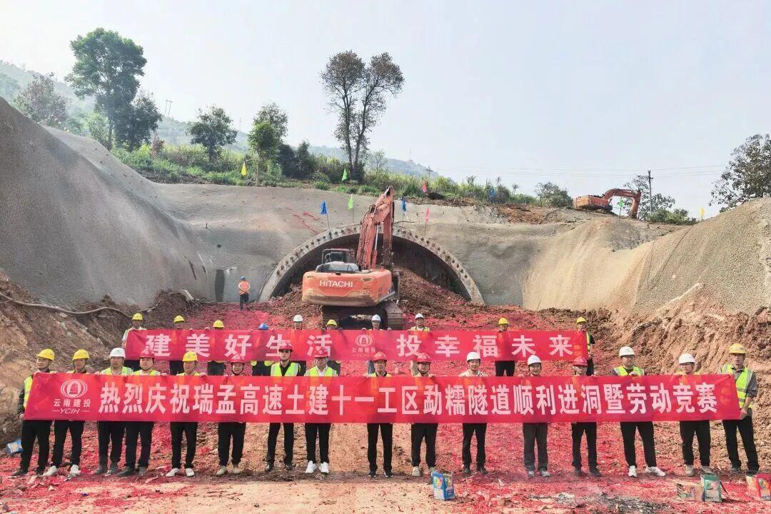 3月28日,瑞孟高速公路(保山段)项目勐糯隧道顺利进洞施工。