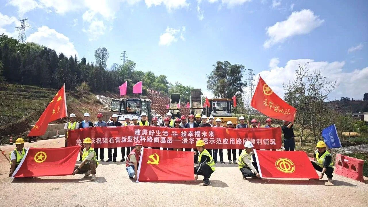 近日,澄华高速公路项目磷石膏水泥稳定碎石基层试验段铺筑完成。