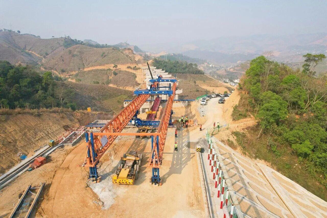 3月28日,南云高速公路项目土建十四工区小罗扎1#大桥首片T梁成功架设。