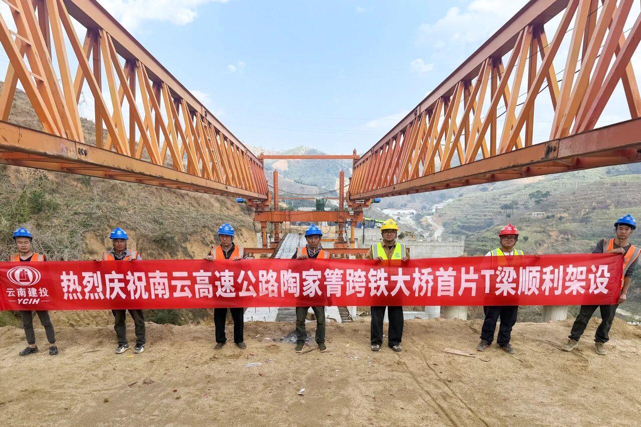 近日,南云高速陶家箐跨铁大桥右幅首片T梁(21-3#)架设完成,标志着该大桥正式进入上部结构规模化施工阶段。