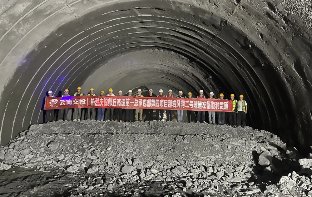 近日,师丘高速公路(曲靖段)重点控制工程岩风洞2号特长隧道左幅顺利贯通。