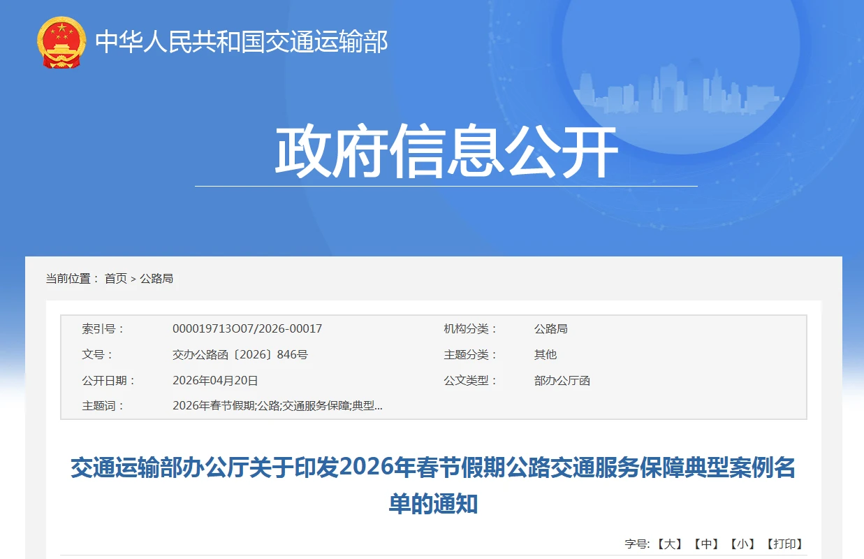 2026年春节假期公路交通服务保障典型案例名单