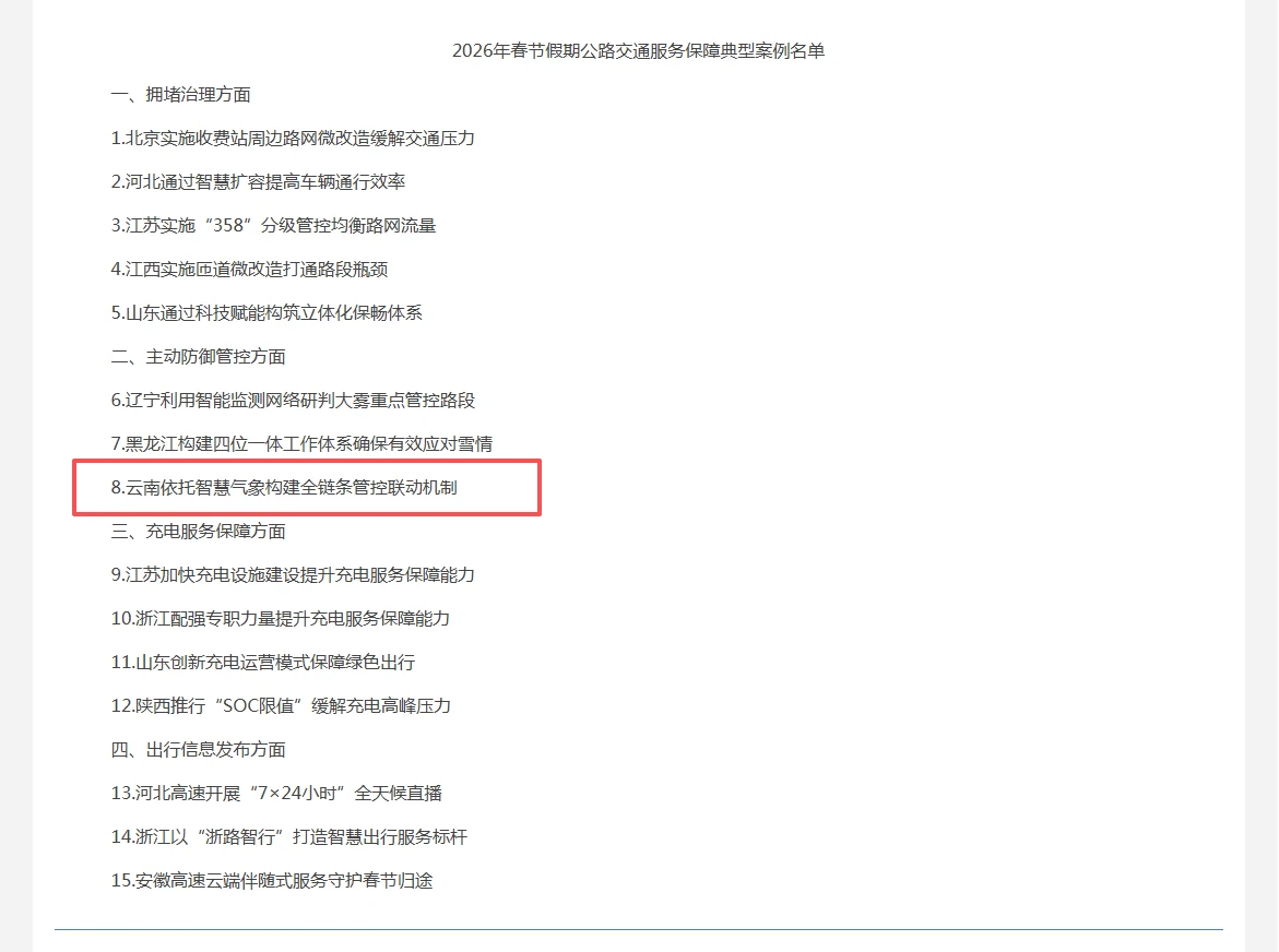 云南入选丨全国春节公路交通服务保障典型案例
