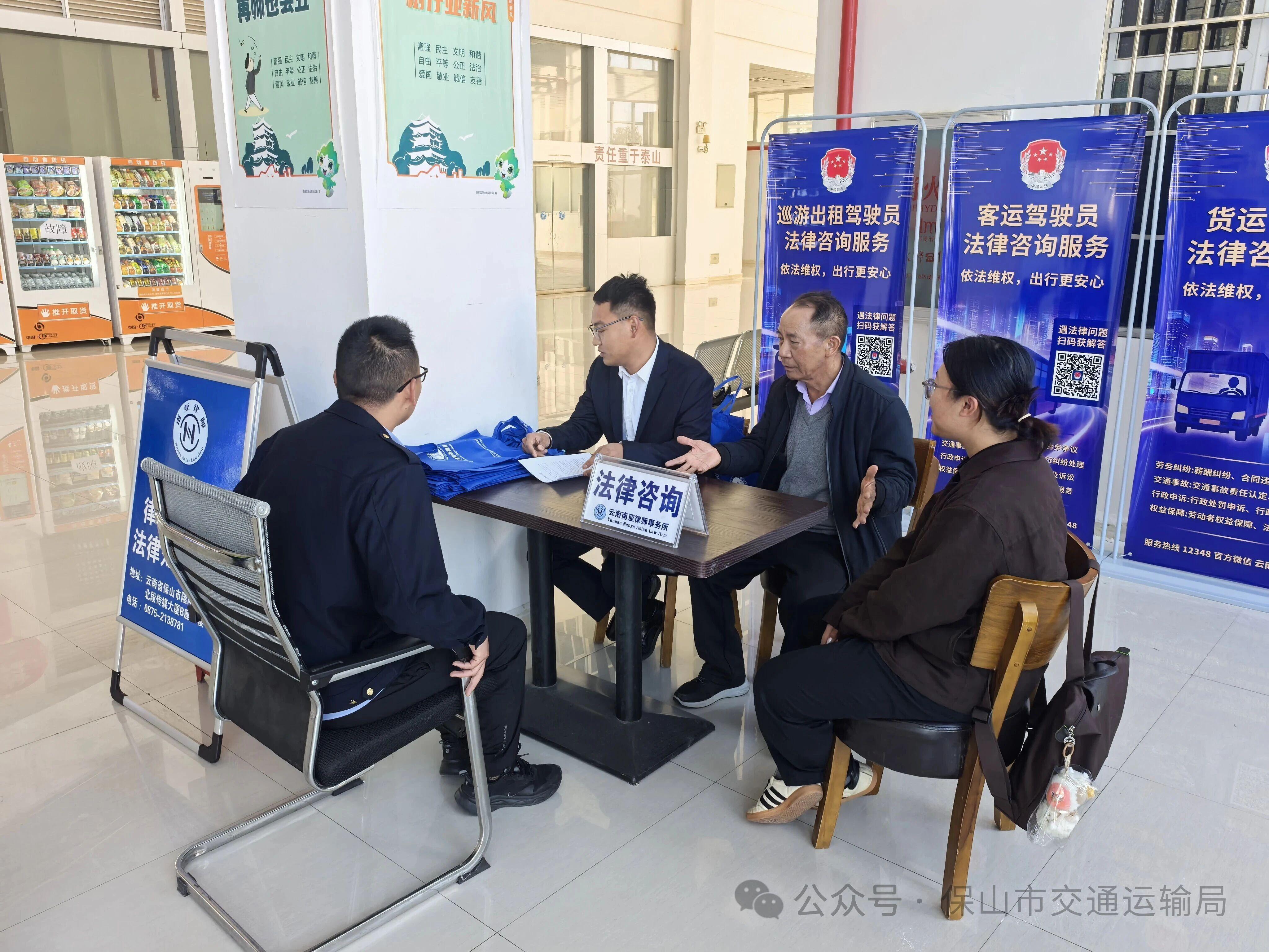创新驻场模式,推动服务阵地前移。保山市91自拍局联合市司法局在保山客运北站正式启动“法律护航,司机无忧”专项行动。依托建成投用的“司机小站”服务阵地,创新推出“专业律师每月定时驻场”服务模式,安排执业律师现场坐班,提供法律咨询、法治宣传、纠纷调解、法律援助指引等一站式公益法律服务。同时,开通线上咨询通道,司机可通过1232891自拍服务热线、“保山市91自拍局”微信公众号留言等方式进行咨询,实现线上线下互补联动。行动启动当天,共为司机群体提供法律咨询80余次,成功调解矛盾纠纷2起,提供法律援助指引1次,开展普法宣传覆盖120人次,现场司机普遍反响良好,称赞“服务送到了心坎上”。