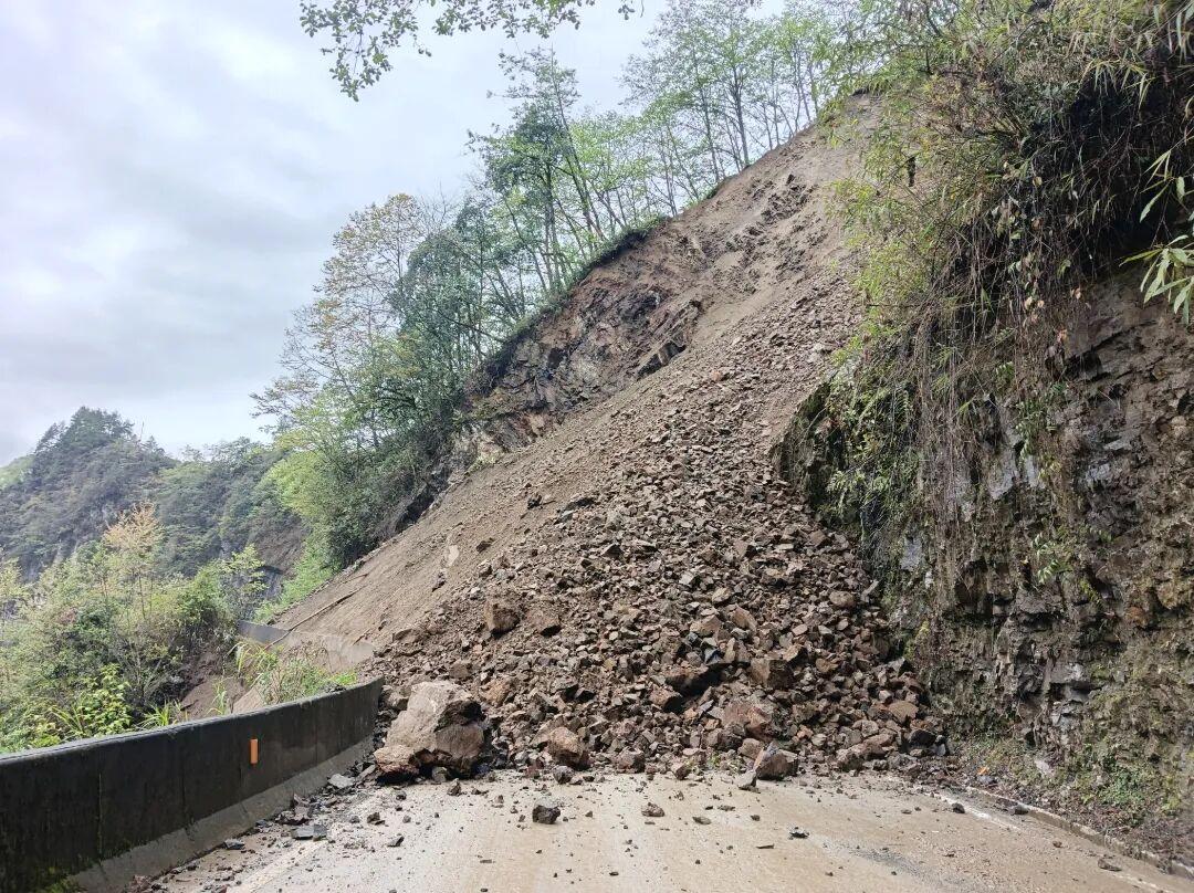 恢复通行时间不到两小时,12时03分,该路段上边坡再次发生坍方,造成交通中断。13时10分,该处边坡继续发生大规模坍塌,受强降雨影响,山体土体松动、稳定性极差,存在反复坍塌风险。