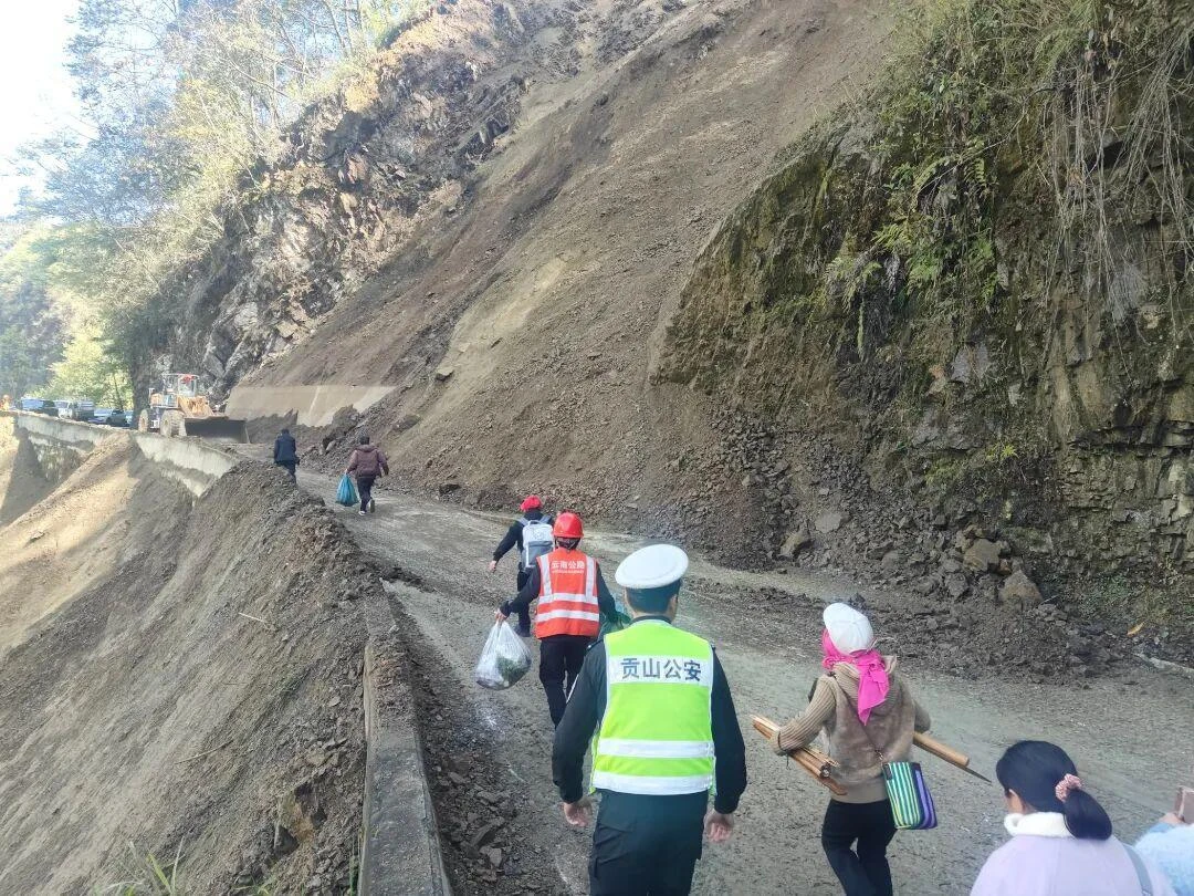 4月22日清晨,贡山公路分局组织抢险力量开展抢修保通,10时33分,经应急抢险队员不懈努力,该路段已恢复半幅通行。