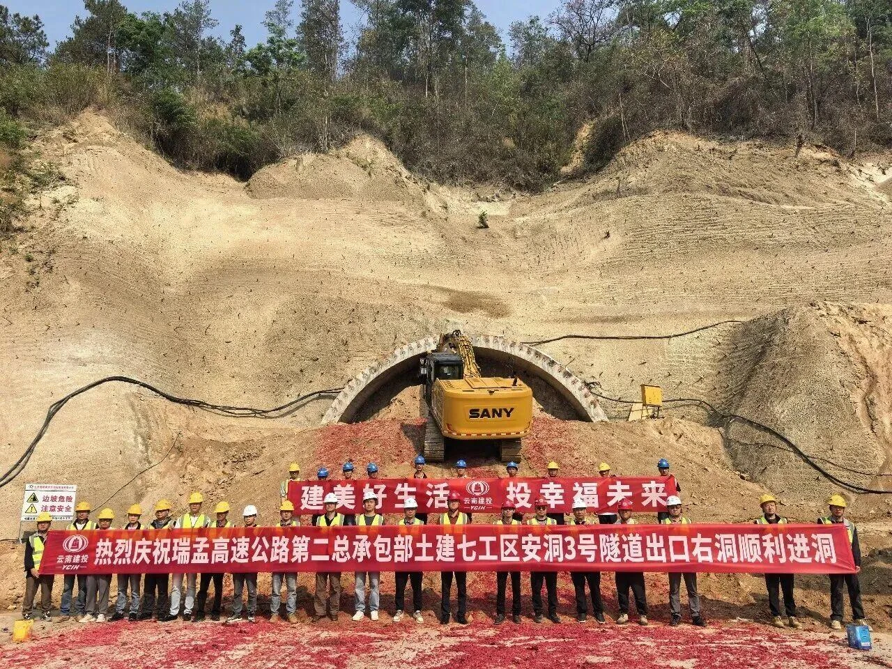 4月22日,瑞孟高速公路安洞3号隧道出口顺利进洞施工,进一步打通关键施工线路,有效衔接桥梁、路基、附属工程等后续施工任务。