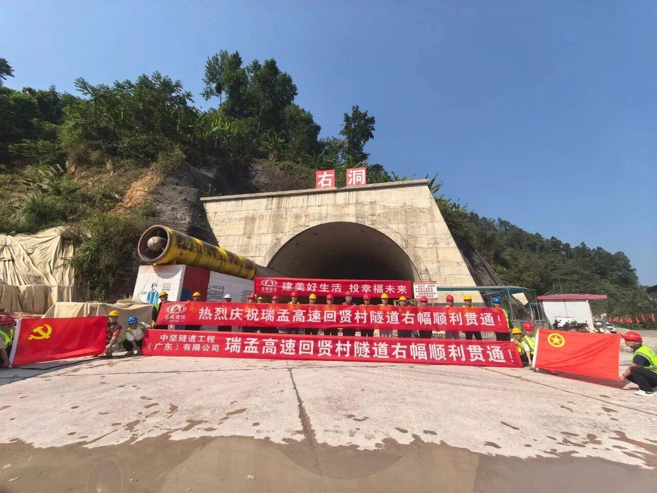 4月17日,瑞孟高速公路建投段首座特长隧道——回贤村隧道右幅顺利贯通。