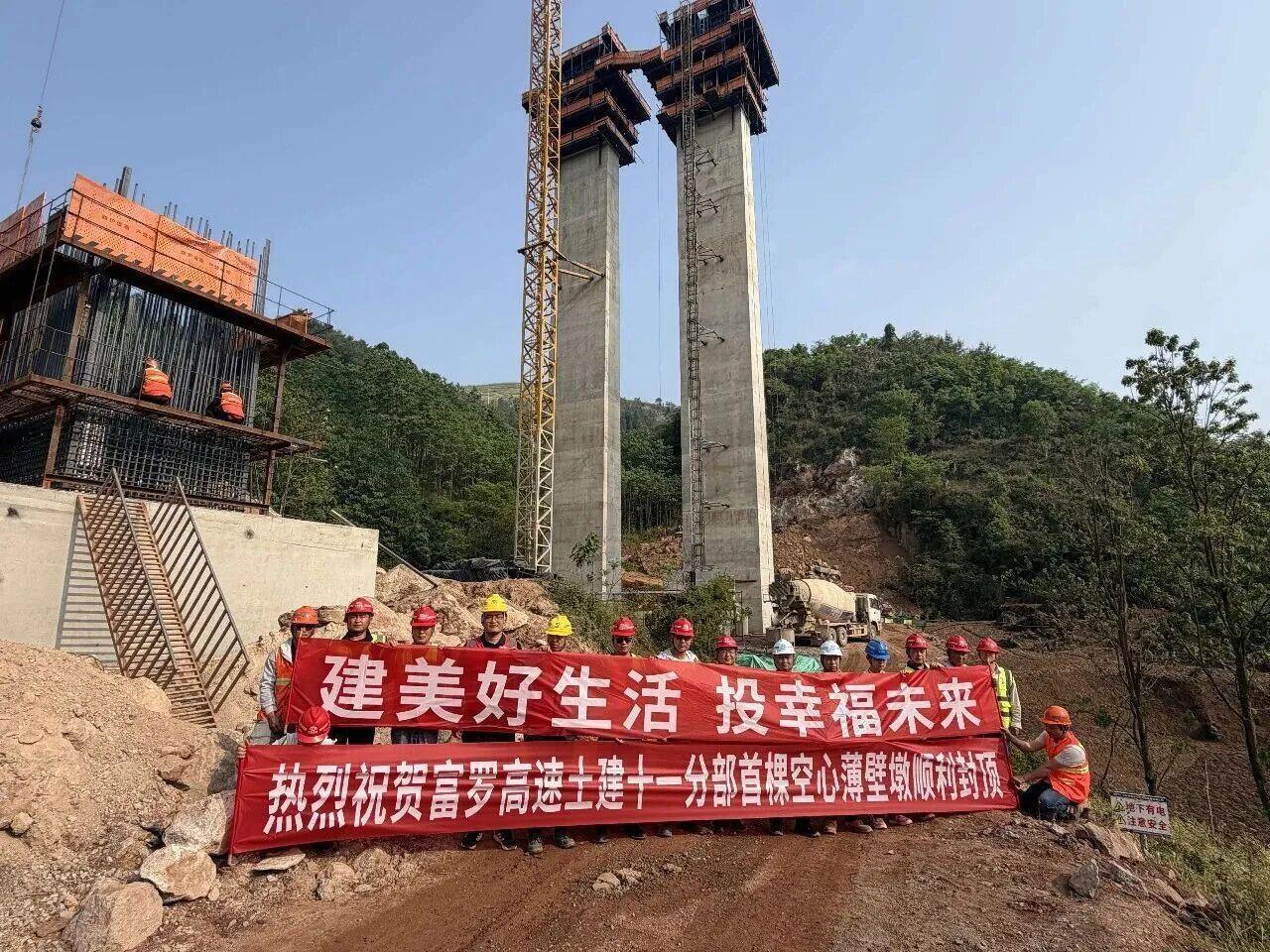 4月18日,富罗高速项目阿启箐3号大桥首个主墩(左幅14号)顺利封顶,该桥下部结构施工取得阶段性进展。