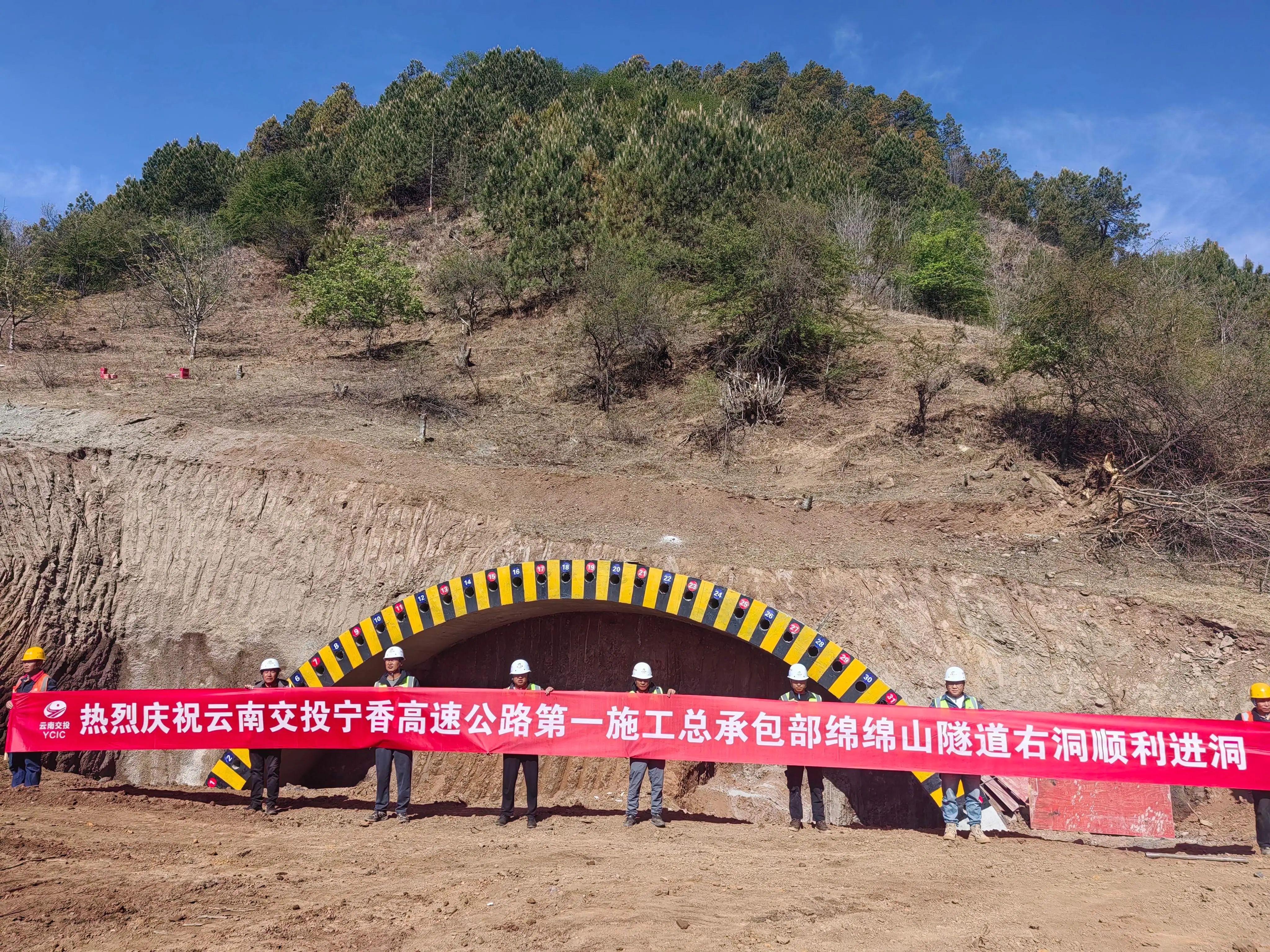 4月18日,国高网G7611都匀至香格里拉高速公路宁蒗至香格里拉段绵绵山隧道进口右幅顺利实现进洞施工。